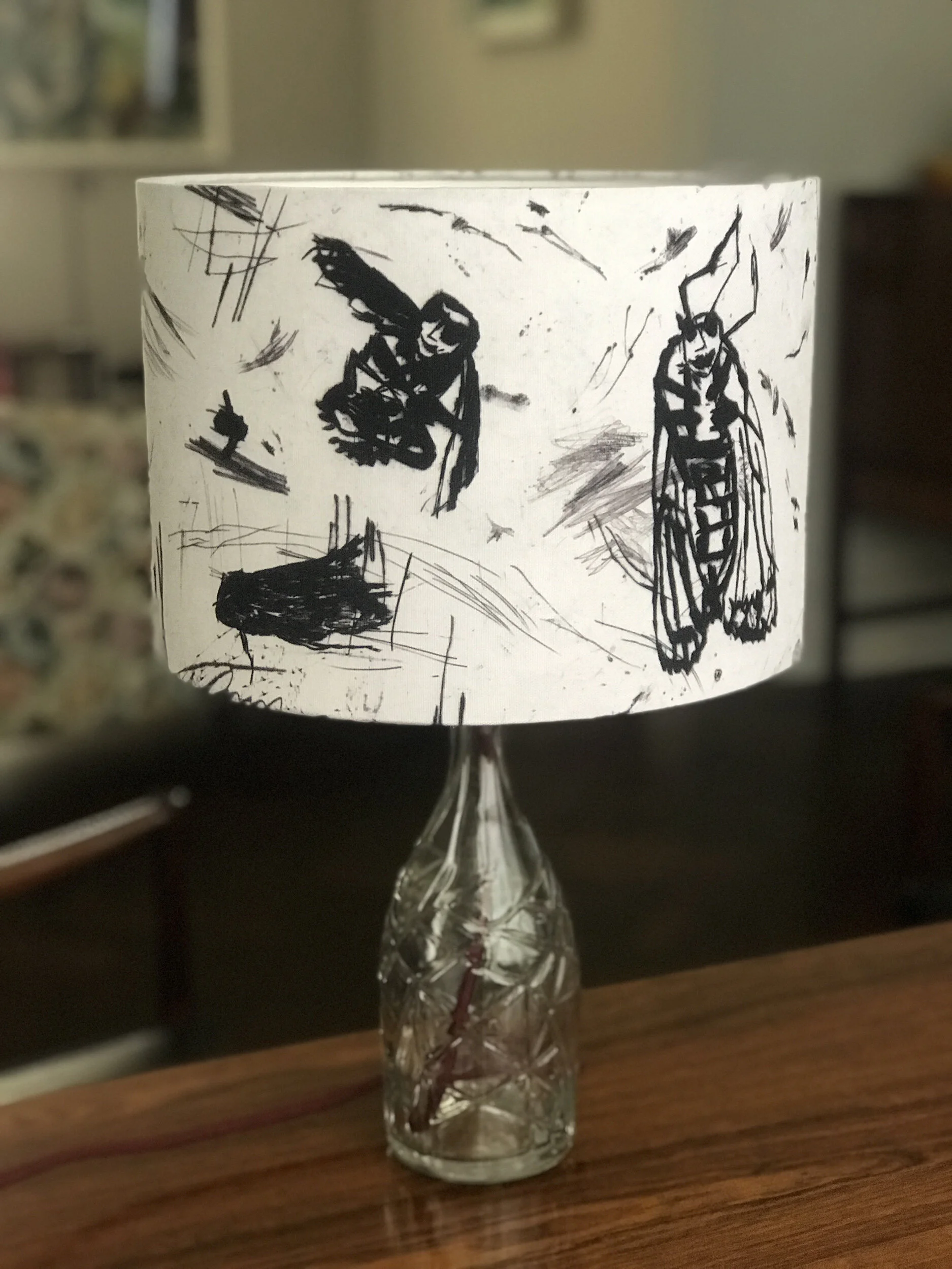 Lampshades 'Come Dine With Me' Illustrated Paper Lampshade £100.00 Dog and Sausage Lampshade £110.00 Dead Stuff Lampshade £65.00